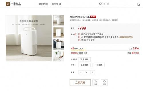 目前众筹价格仅799元,相比市面上其他18L除湿量的同类产品可以说是“极具性价比”了。