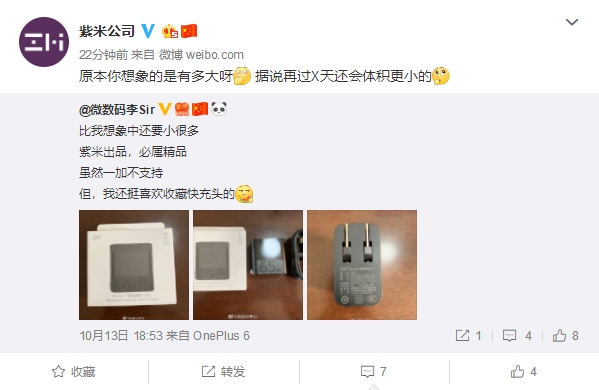 今天上午,紫米官方微博透露称,未来还将推出体积更小的充电器产品,具体上线日期就不清楚了。