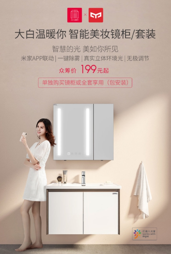 11月7日消息, 小米有品众筹第440期产品揭晓:大白&Yeelight智能美妆镜柜套装,众筹首发价199元起。